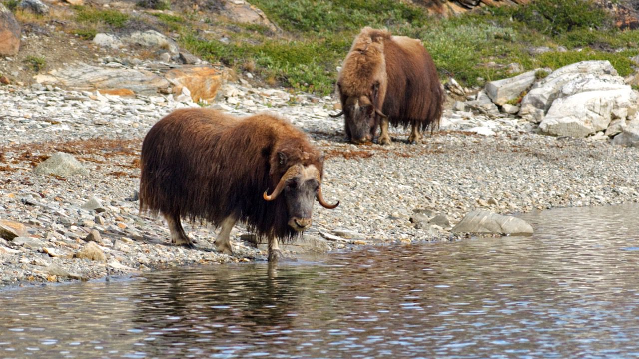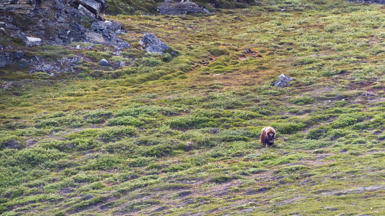 Es ist erstaunlich, welchen sicheren Tritt Moschusochsen haben müssen. Wir folgen den ausgetretenen Pfaden dieser urtümlichen Tiere und wundern uns immer wieder, über welche Steilhänge uns ihre Wege führen.