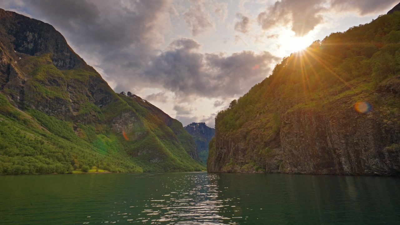 Er ist der längste Fjord Europas. Ein Herzstück Norwegens, das gleich mit einer Vielzahl an Superlativen aufwarten kann. Bis zu 1300 Meter tief ist sein dunkelblaues, eiskaltes Wasser. Genauso tief, wie sich die Berge an seiner Küste in den Himmel hoch strecken.