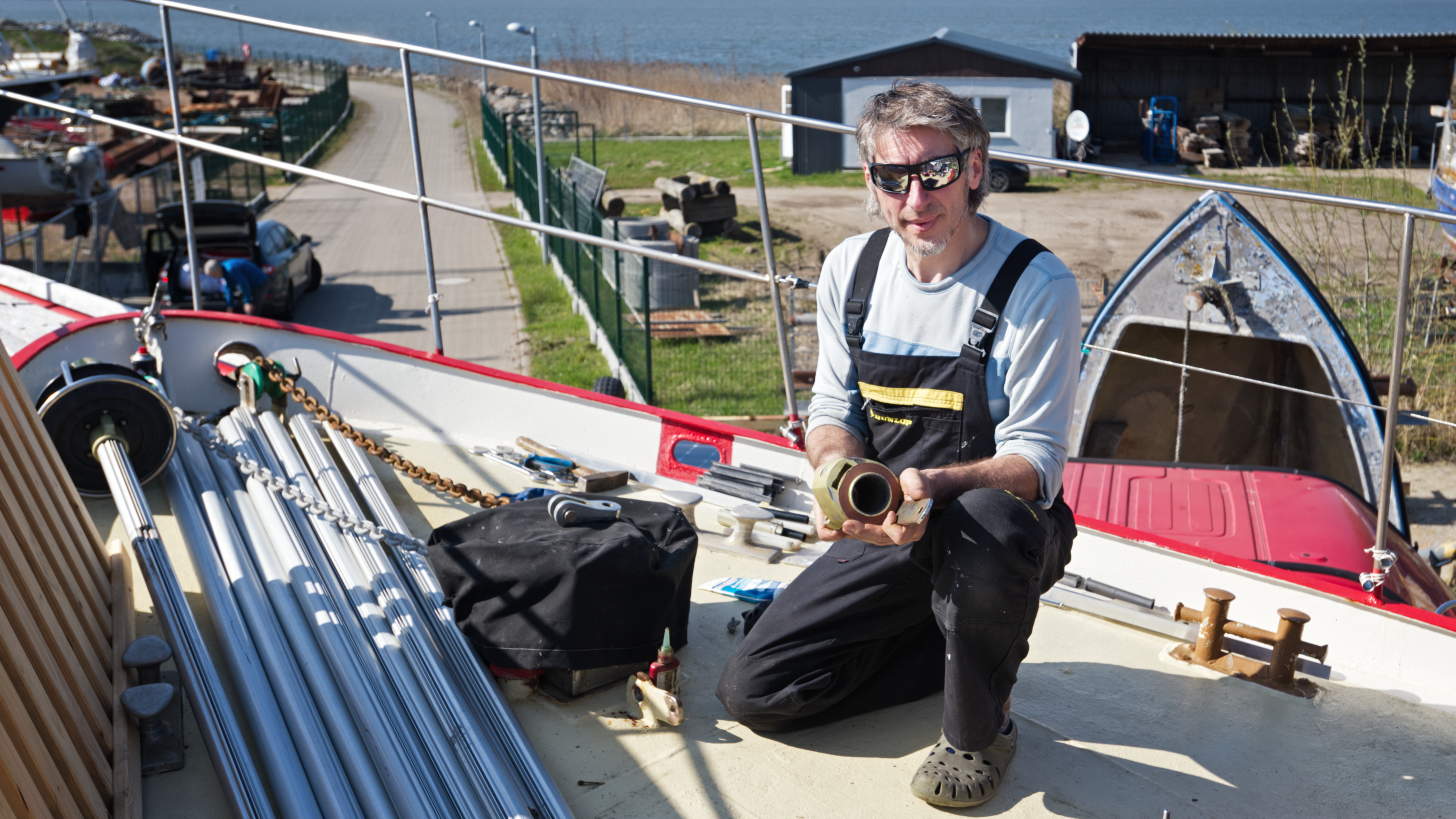 Überall wird poliert und geschruppt, die Segel angeschlagen und letzte Handgriffe erledigt. Saisonstart an der Ostsee. Zwischendurch geht´s gesellig zu. Zu Gast bei Christine und Peter in Strahlsund werden wir in Fahrtenseglerkreis verwöhnt. Am Werftgelände halten wir hin und wieder Philipp und Mareike von der Arbeit ab. Mit Oliver und Gundolf sitzen wir am Kutter bei Fischbrötchen und tratschen über den Nordatlantik. Und unter Safari treffen wir immer wieder auf Uli mit Polierpaste und Pinsel.