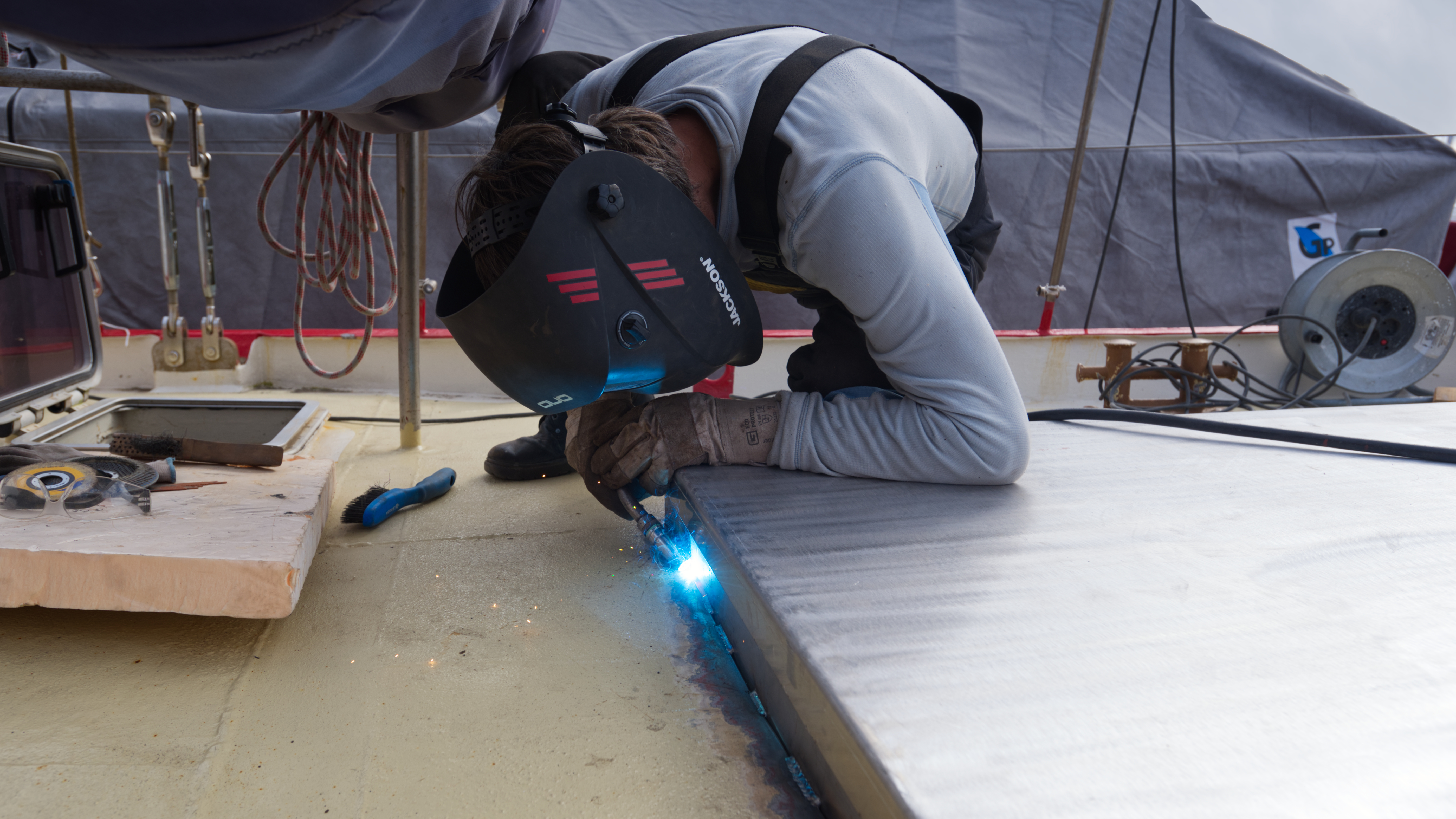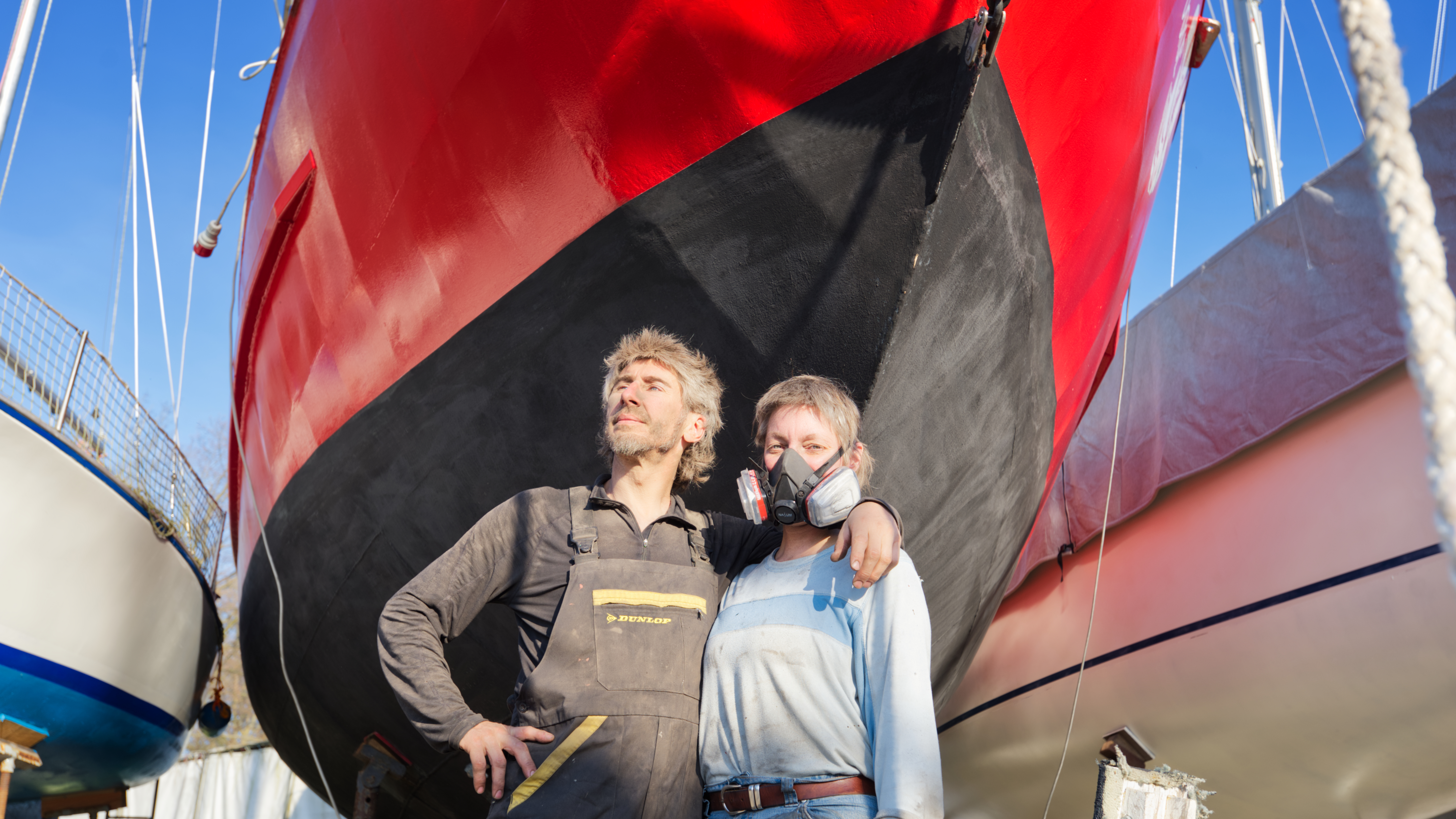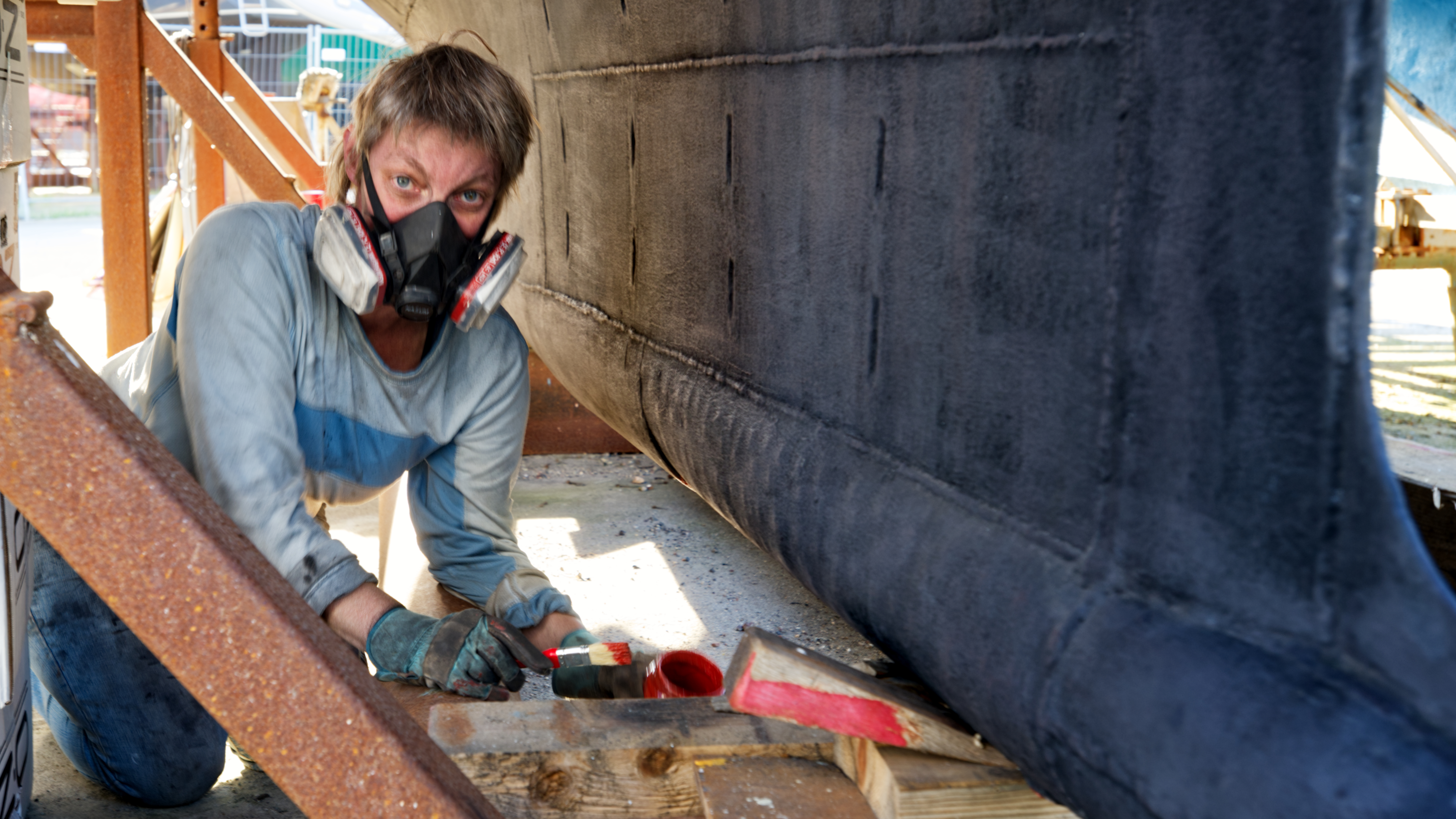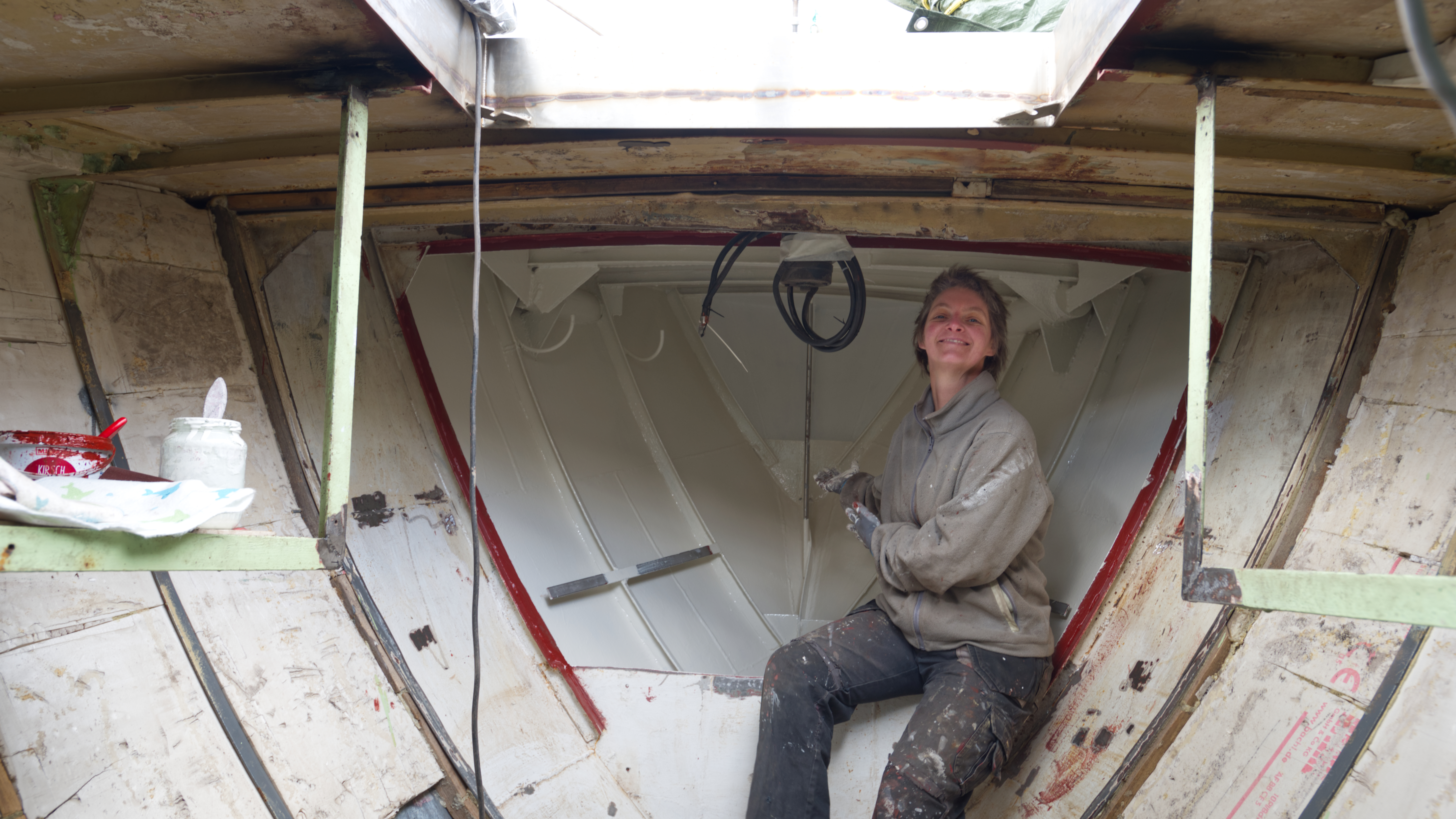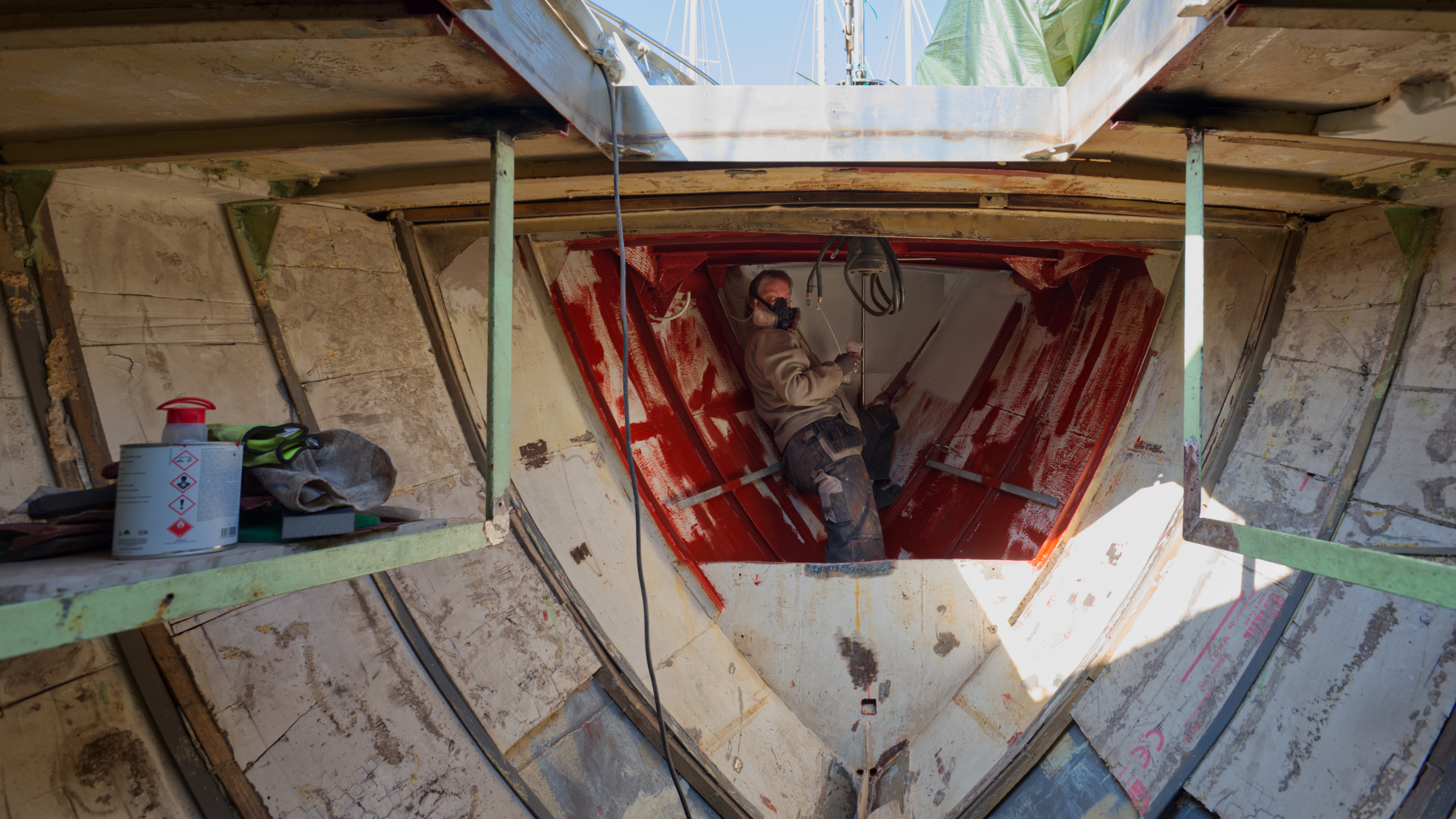 Dann erleben wir die ersten Motivationsschübe – erste „erledigt“-Markierungen in der To-Do-Liste: Die Rollanlage für die Fock ist fertig zu Einsatz. Das Sturmstag samt neuem Unterzug versetzt und startklar. Der neue Ankerkasten glänzt und der Motorraum ist neu schallisoliert und gestrichen. Der neue Hochleistungspropeller ist montiert und das klemmende Ruderlager gerichtet. Die Kratzer an der Kielsohle vom letzten „Rumpler“ sind mit Rostschutz versiegelt und das neue Antifouling gestrichen.