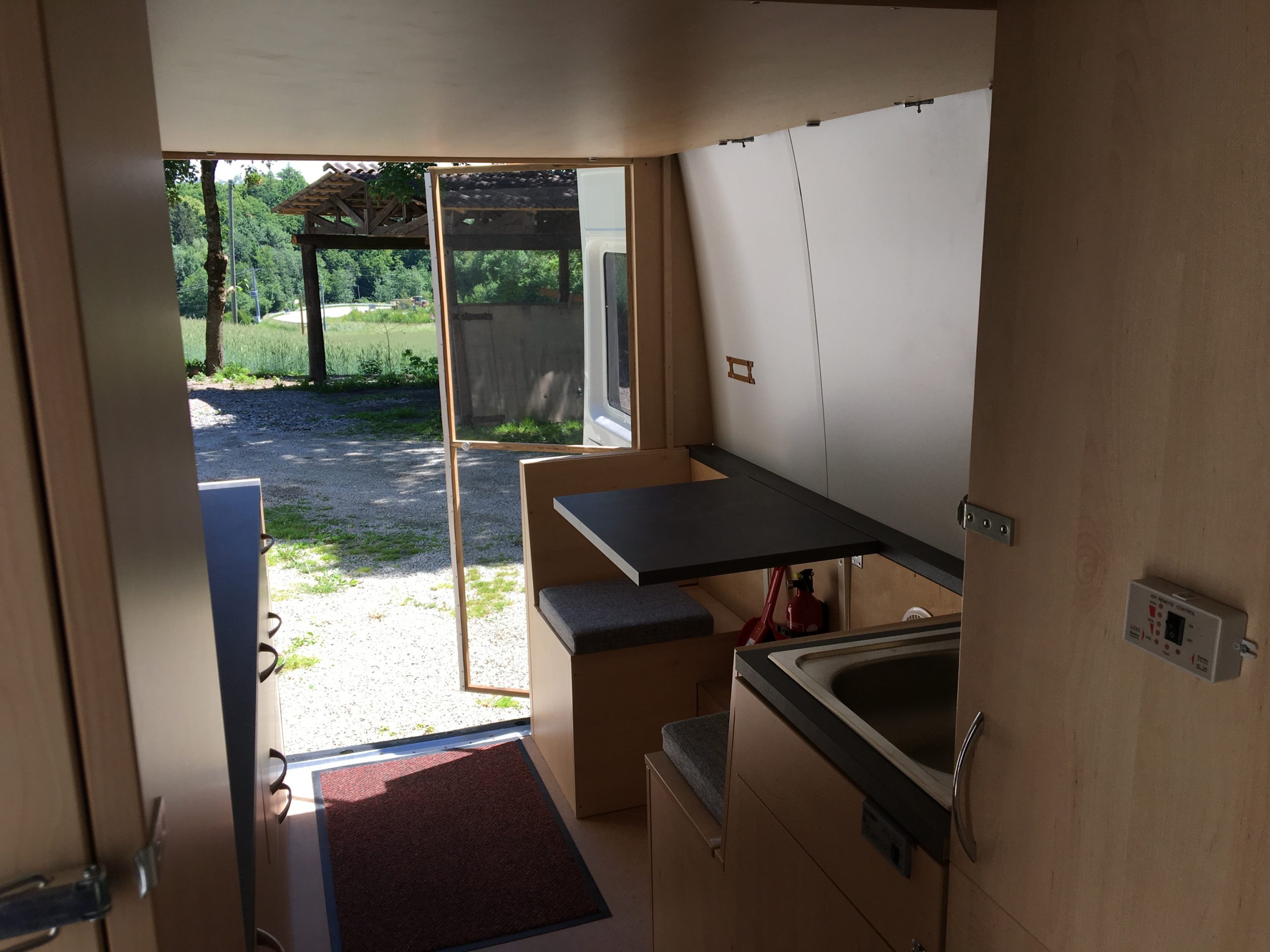 - eine kleine Toilette und eine kleine Campingküche sollten schon möglich sein