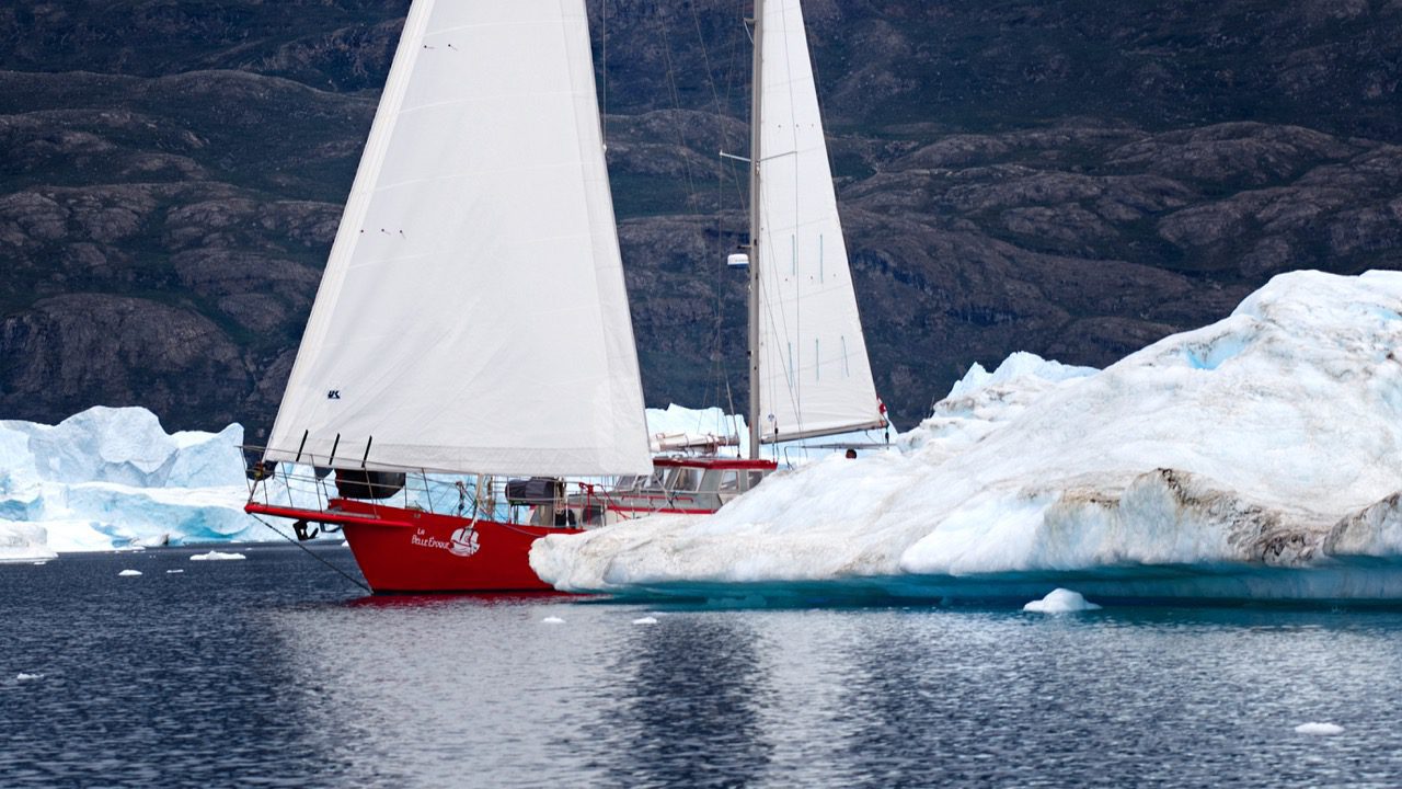 Wir haben Samstag, den 30 Juli 2022. Die Mittagssonne brennt vom Himmel und nimmt der eisigen Luft etwas an Biss. Eine leichte Brise aus West schiebt LA BELLE EPOQUE immer tiefer in den breiten Fønfjrod. Oder, besser gesagt in den Ujuaakajiip Kangertiva, wie der Fjord seit jeher auf Grönländisch heißt.